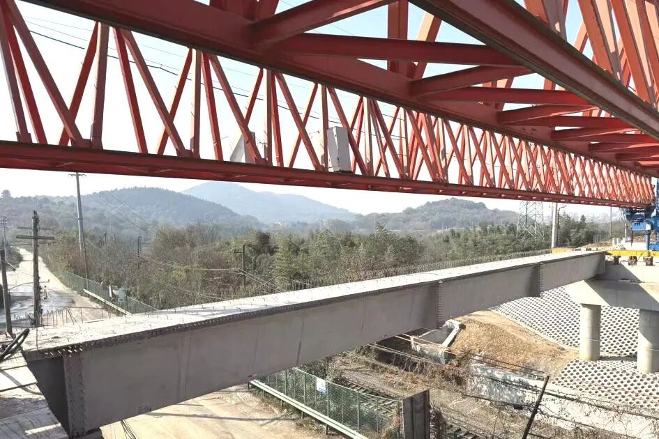 11月21日,馬鞍山向山項目老313省道改造提升甸塘橋工程首片小箱梁架設完成。...