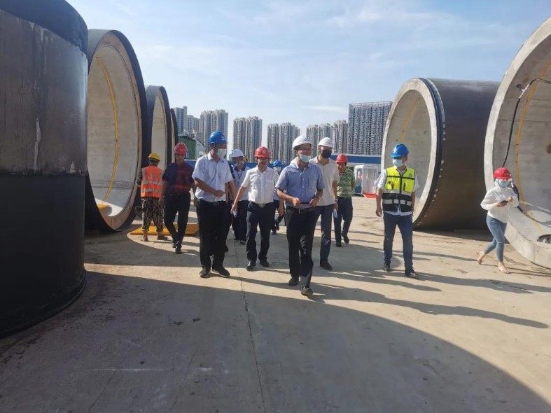7月23日,武漢城投公司副總經理盛華到武漢繡球山污水泵站及進出水管道工程項目檢查指導工作,集團公司副總經濟師鄧永馳陪同。