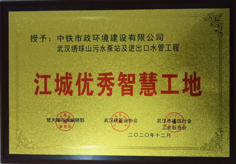 武漢繡球山污水泵站及進出水管道工程項目榮獲“江城優秀智慧工地”稱號
